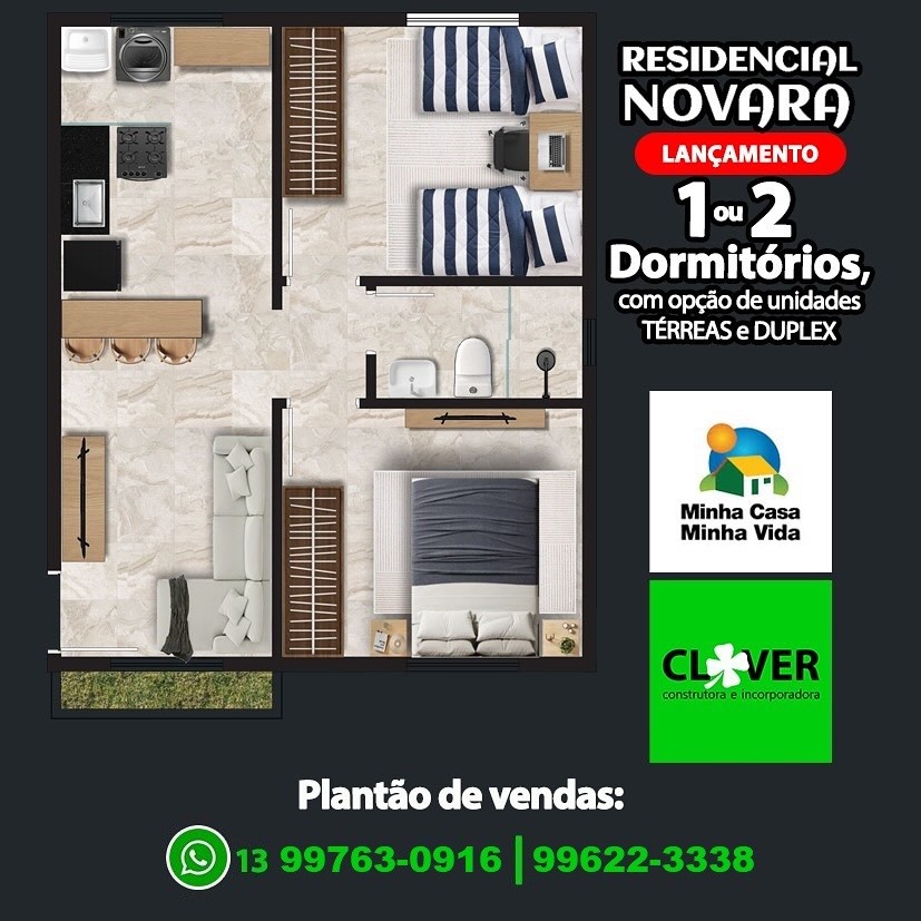 CLOVER RESIDENCIAL NOVARA EM SÃO VICENTE A OPORTUNIDADE QUE ESPERAVA PARA SAIR DO ALUGUEL, APARTAMENTOS COM 1 OU 2 DORMITÓRIOS, PERTO DE TUDO, APROVEITE, CONTATO VIA WHATSAPP: 13 99763-0916 / 13 99622-3338 26/10/2025